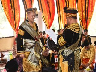 HUT Kampar ke-74, Pj Bupati Kampar Dinobatkan Sebagai Payung Panji Adat Datuok Rajo Limbago